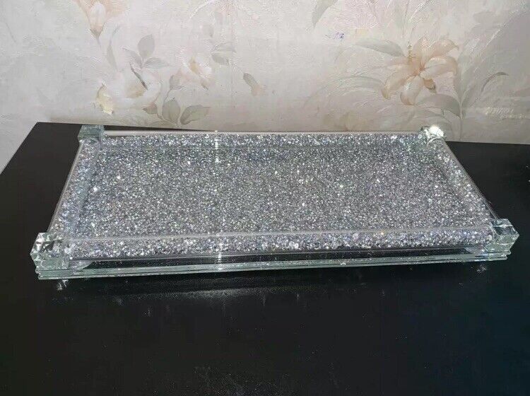 CRYSTAL FILLED TRAY FOR TEA COFFEE SUGAR DIAMOND CRUSHED JARS CANISTERS STORAGE