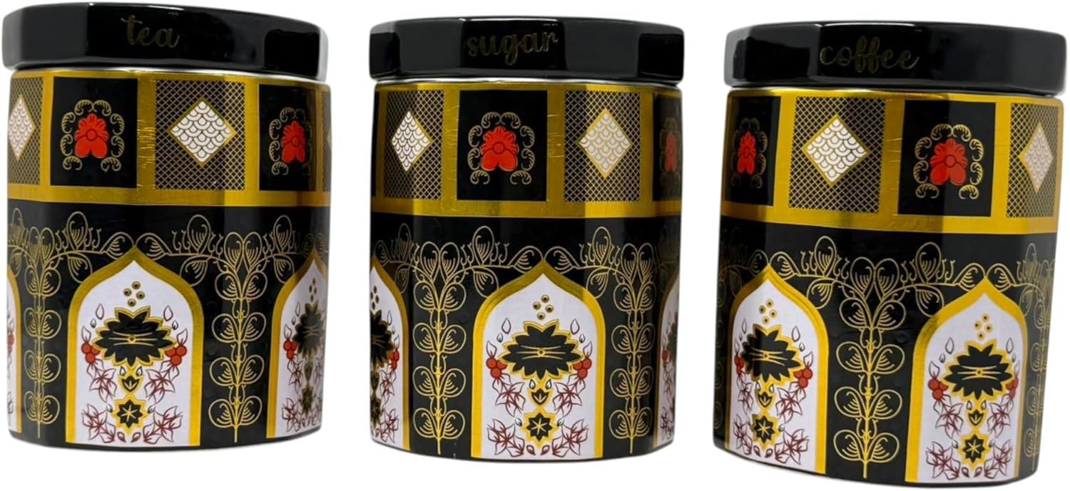 SET OF 3 KITCHEN STORAGE CANISTERS TEA COFFEE SUGAR JARS POTS CONTAINERS CADDY[BLACK]