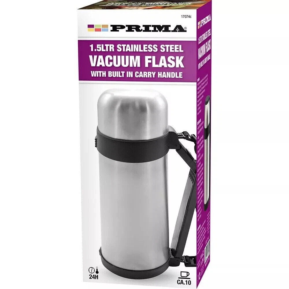 1.5L VACUUM THERMOS FLASK HOT & COLD TEA COFFEE CARRY HANDLE STAINLESS STEEL