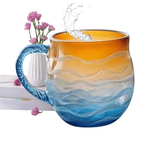 Tiajingzi Sea Glass Sunset Coffee Mug, Textured Resin Oceans Wave Pattern Cup, Handmade Sea Glass Sunset and Oceans Wave Mug, Beach Theme Mugs, Drinkware for Tea, Milk, Juice, Wine Coffee Lover