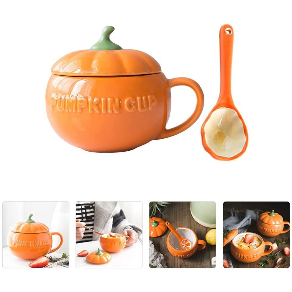 Ceramic Pumpkin Cup with Lid Spoon Pumpkin Coffee Cup Mug Halloween Pumpkin Soup Cup for Tea Milk Coffee Hot Cocoa