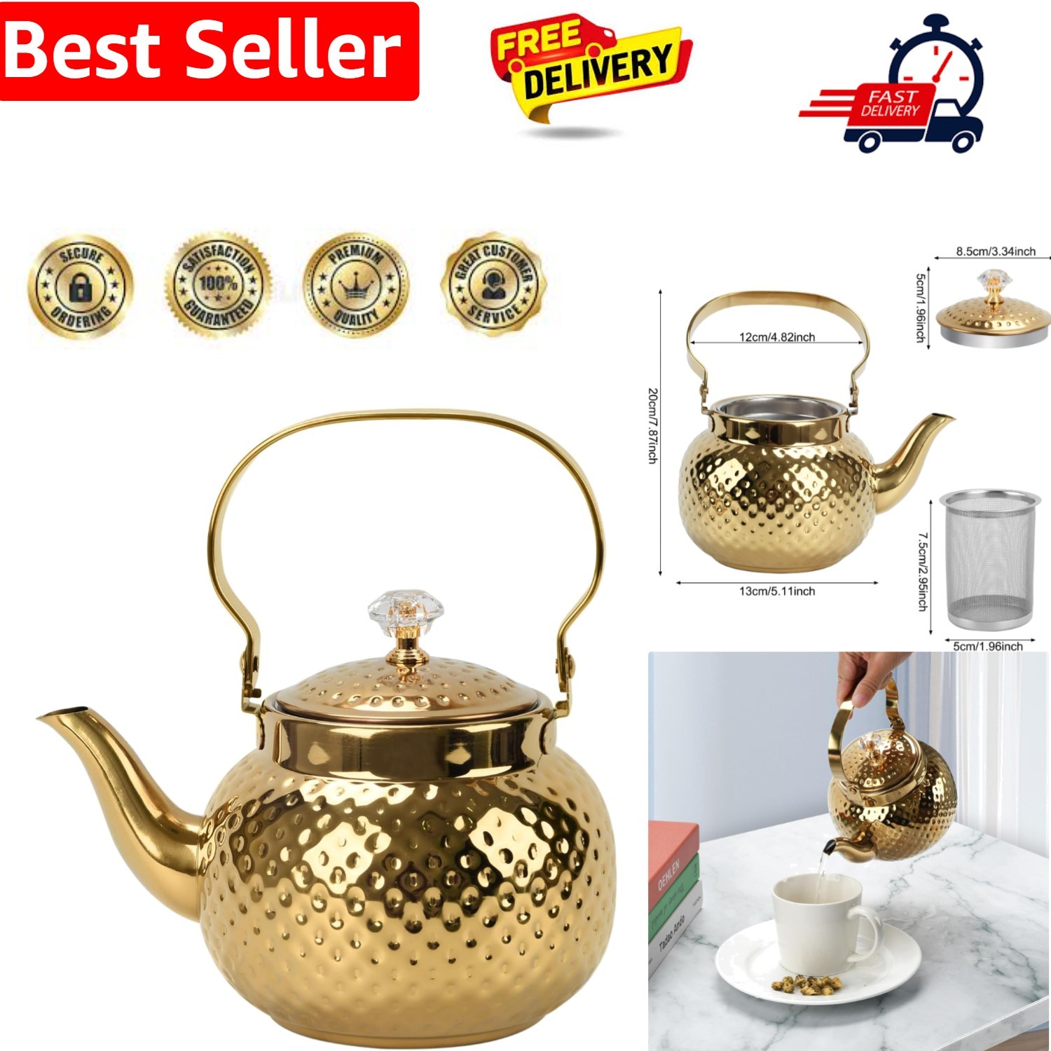 Hammered Tea Pot, Stainless Steel teapot Loose Leaf Kettle for Tea, Milk, Cof...