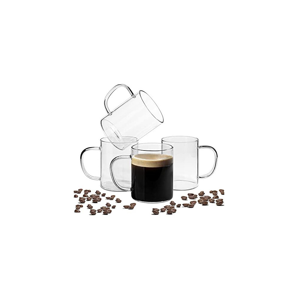 400ml Glass Coffee Mugs Set of 4 Clear Glass Coffee Cup with Big Handle Large Borosilicate Glass Mug for Tea Milk or Hot Cold Beverages Crystal