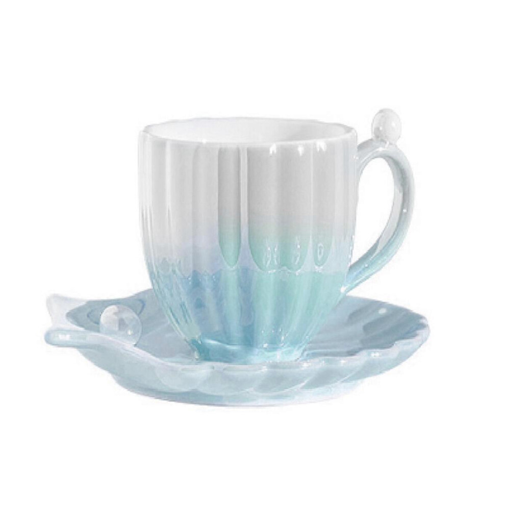 Ceramic Coffee Mug with Saucer,Pearl Shell Cup,Cute Coffee Mugs for Office and Home,for Tea Latte Milk A