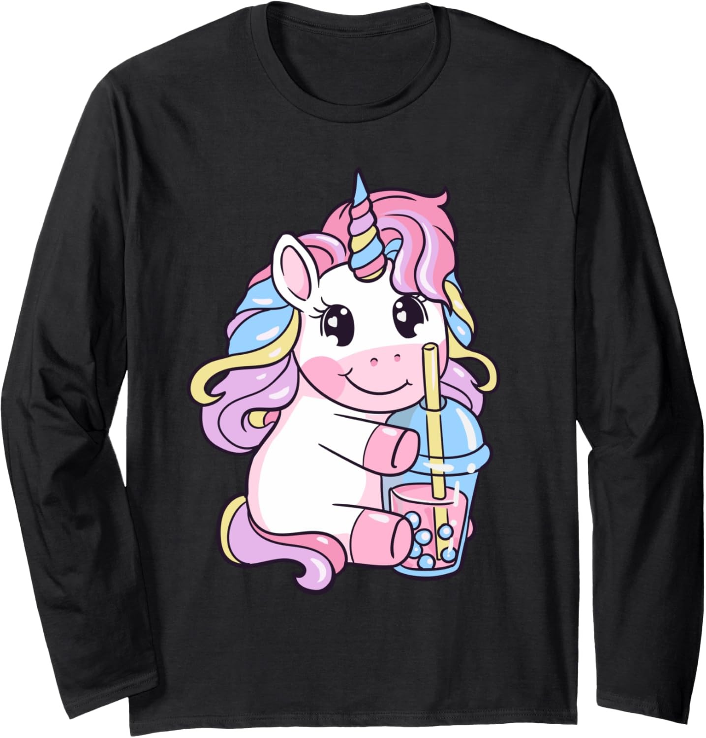 Kawaii Bubble Tea | Unicorn Boba Tea for Milk Tea Lover Long Sleeve T-Shirt