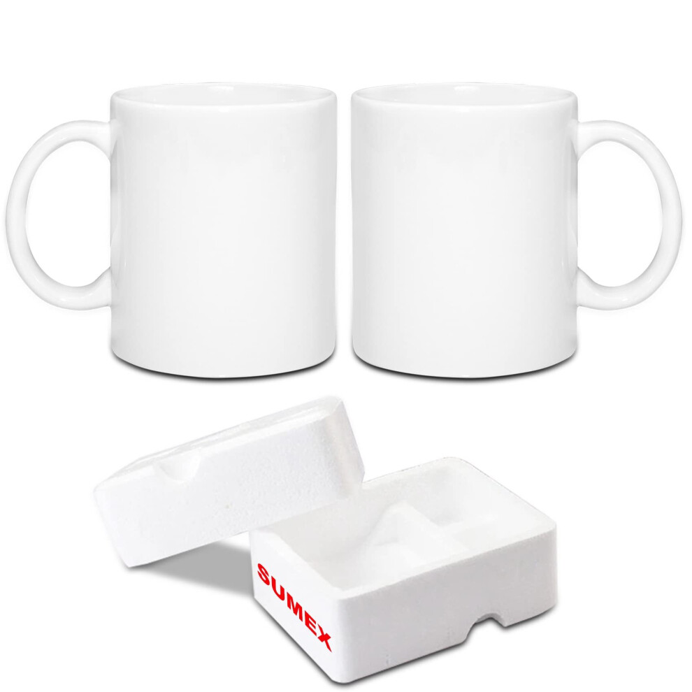 Sumex 11Oz Set Of 2 Sublimation Blanks White Ceramic Coffee Mugs For Tea, Milk, Latte, Hot Cocoaa