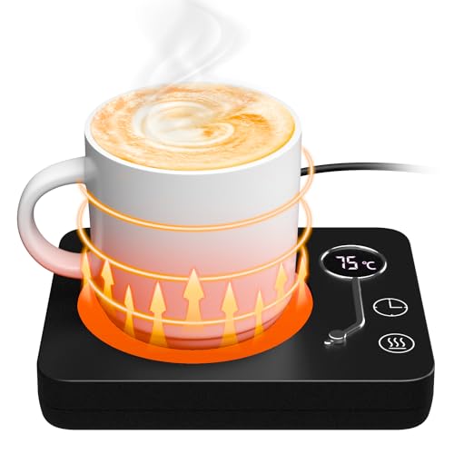 Mug Warmer,MQUPIN Coffee Warmer for Desk with 3 Temperature Settings (55℃/65℃/75℃), Cup Warmer for Tea, Milk with 1-12H Auto-off, Coffee, Tea and Milk Warmer for Office Home Desk Use