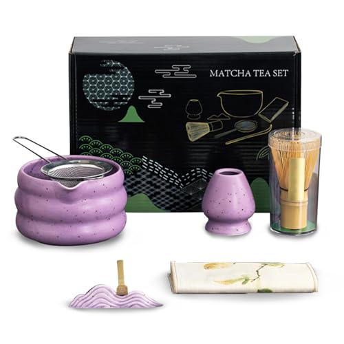 Topchances 7 Pcs Matcha Set,Matcha Whisk,Matcha Kit for Ceremony,Matcha Tea Set for Making Latte,Matcha Whisk and Bowl with Scoop&Sifter,for Beginners and Enthusiasts Gift for Matcha Lover(Purple)