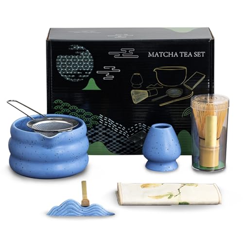 Topchances 7 Pcs Matcha Set,Matcha Whisk,Matcha Kit for Ceremony,Matcha Tea Set for Making Latte,Matcha Whisk and Bowl with Scoop&Sifter,for Beginners and Enthusiasts Gift for Matcha Lover (Blue)