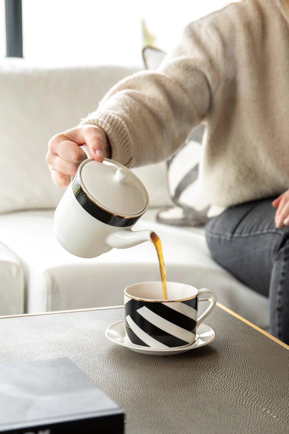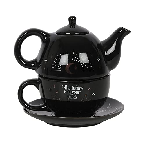 Enchanting Black Fortune Teller Tea-for-One Tea Set - 15cm x 16.5cm (1 Set) - Magical Design with White and Gold Accents, Includes Teapot, Cup, and Saucer - Ideal for Making the Perfect Cuppa
