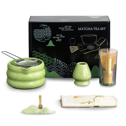 Topchances 7 Pcs Matcha Set,Matcha Whisk,Matcha Kit for Ceremony,Matcha Tea Set for Making Latte,Matcha Whisk and Bowl with Scoop&Sifter,for Beginners and Enthusiasts Gift for Matcha Lover (Green)