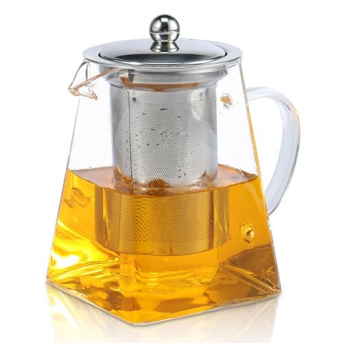 QINGLANG Glass Teapot with Infuser 750ml Tea Pot for One with Stainless Steel Filter Wide Mouth Teapot Heat Resistant Borosilicate Glass Tea Kettle Stovetop Safe for Loose Tea Flowering Tea