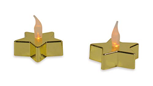 Riffelmacher 76368 LED Tea Light Star Set of 2 Size 5.7 x 4 cm Gold with Flickering Silicone Flame Battery 1x CR2032 (Included) Lighting Christmas Advent