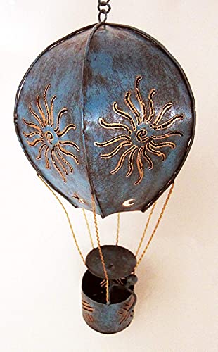 Double Duck Hot air balloon shaped tea-light holder, M - 33 cm high, BLUE finish