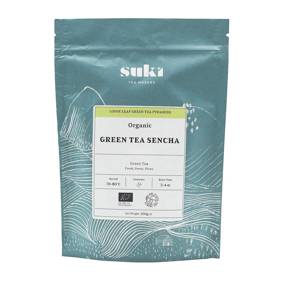 Suki Tea Organic Green Tea Sencha - 100g Pack of Loose Leaf Chinese Green Tea - Light, Smooth & Fresh - With Antioxidants - High Quality, Great Taste