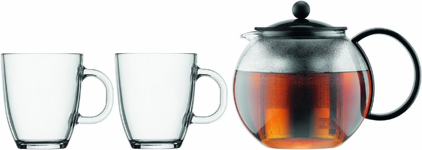 2 Mugs Tea Press Kettle With Filter Set BodumAssam 34oz Black Herbal Tea Infuser