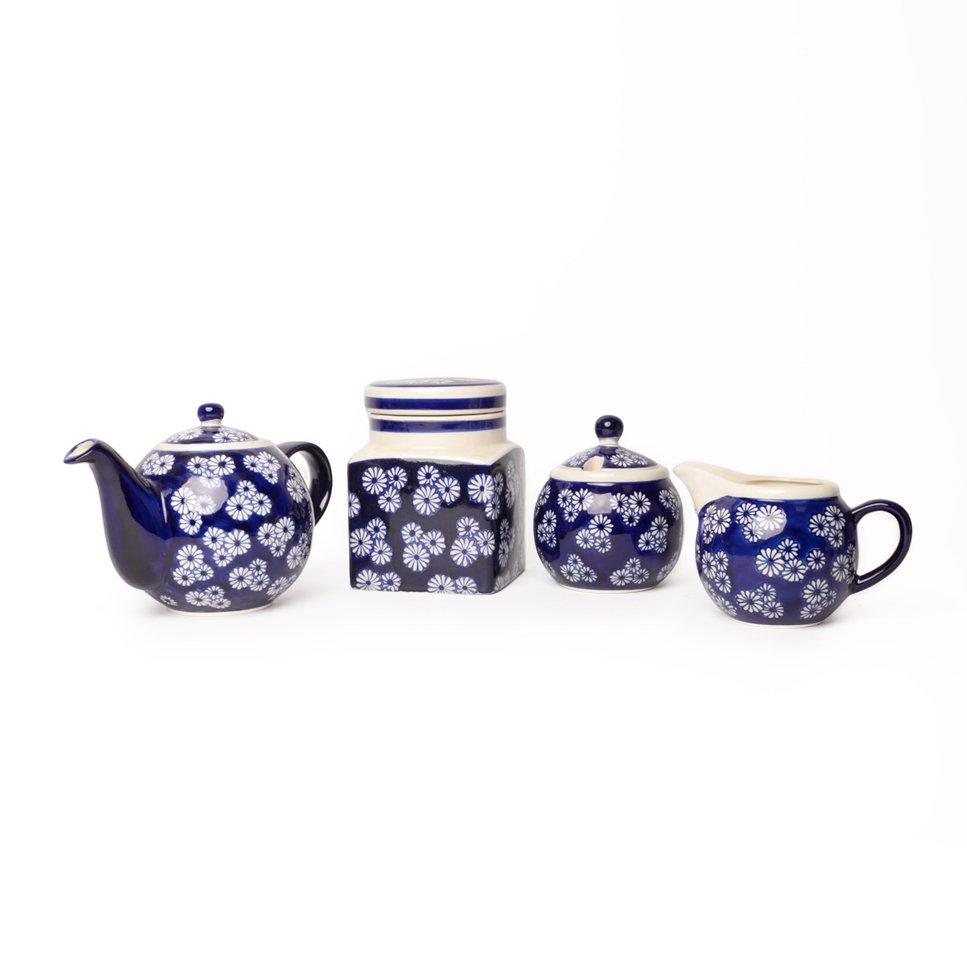 4pc Ceramic Tea Set with Globe® 4-Cup Teapot, Sugar Pot, Creamer Jug and Canister - Small Daisies