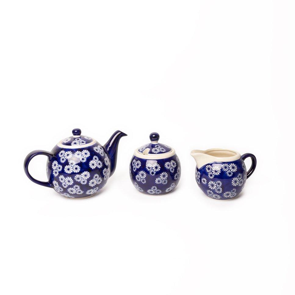 3pc Ceramic Tea Set with 4-Cup Teapot, Sugar and Creamer Pots - Small Daisies