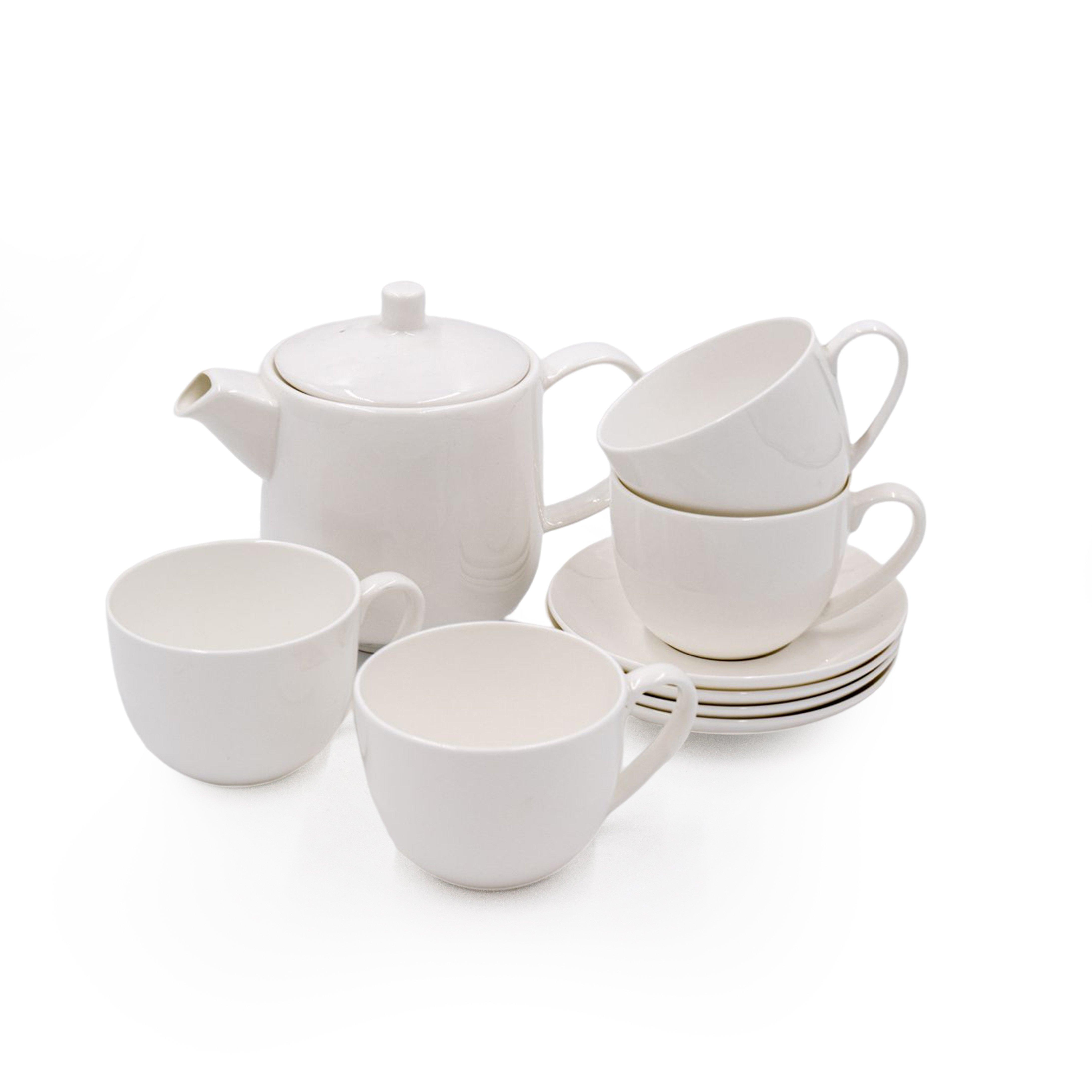 9pc White China Tea Set with 1.2L Teapot, 4x Tea Cups and 4x Saucers - Cashmere