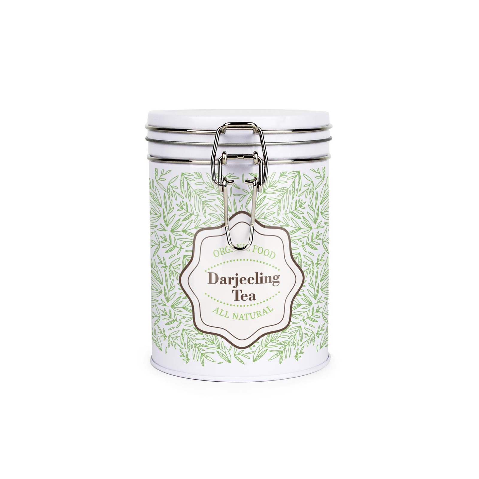 Organic Green Leaves Hot Drinks Canister - Darjeeling Tea Clip-Lid Storage Tin