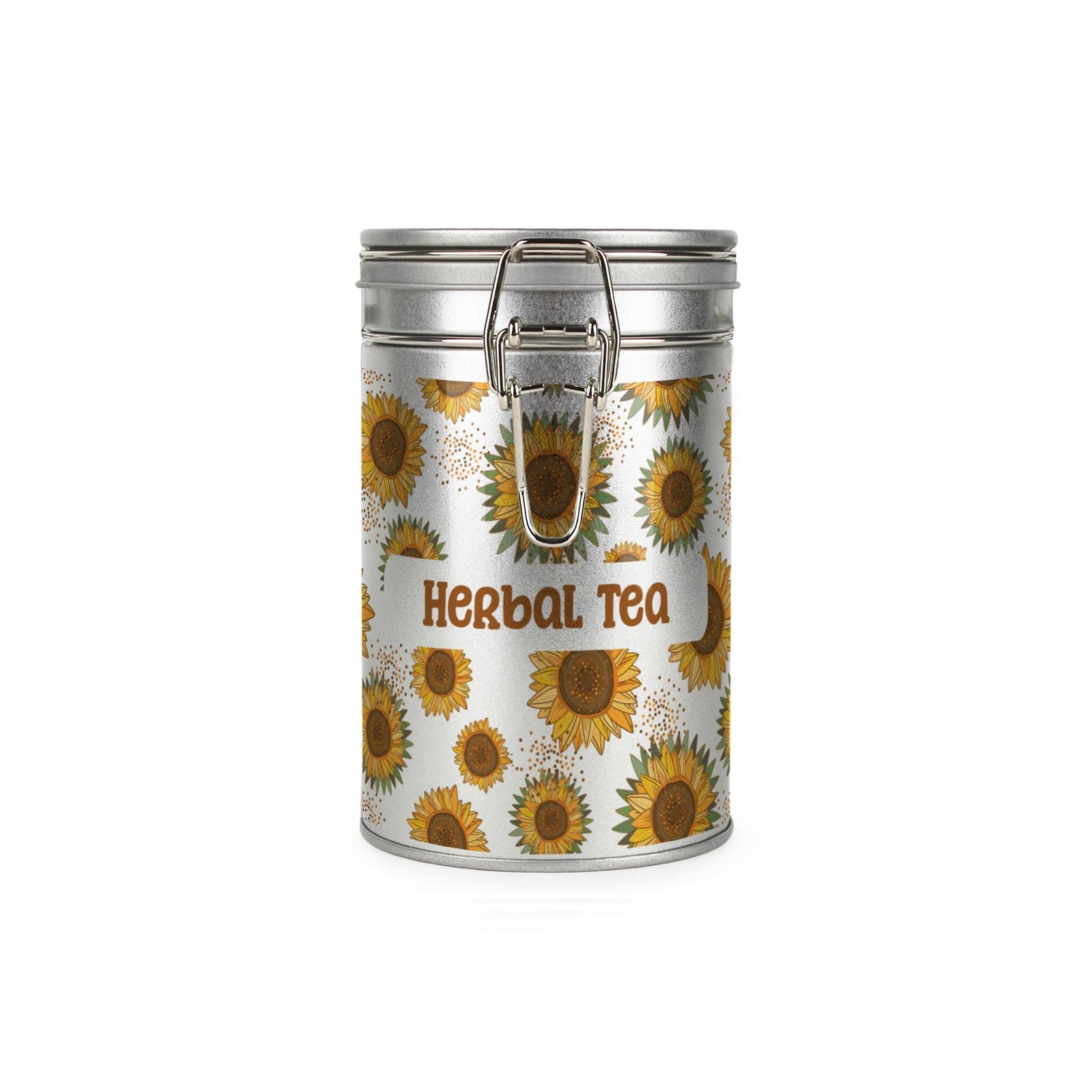 Purely Home Sunflowers Herbal Tea Canister - Silver Storage Gift Tin