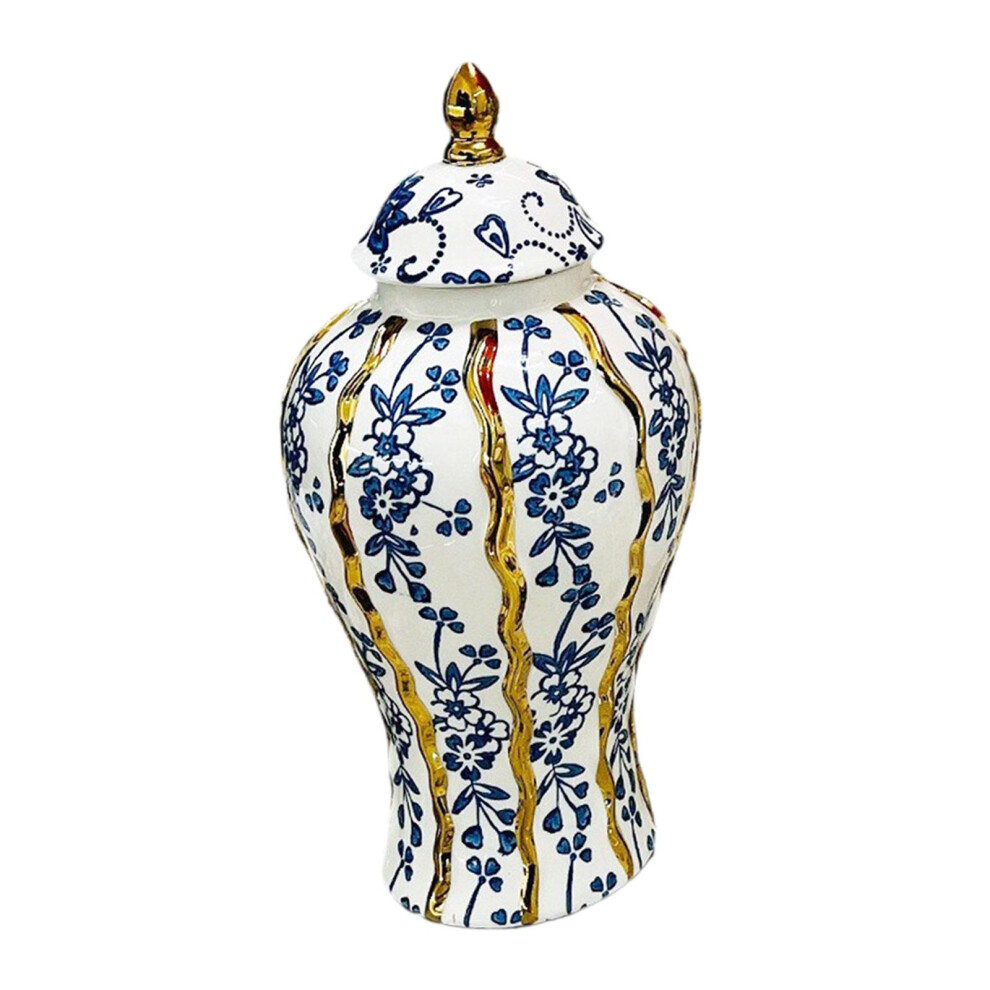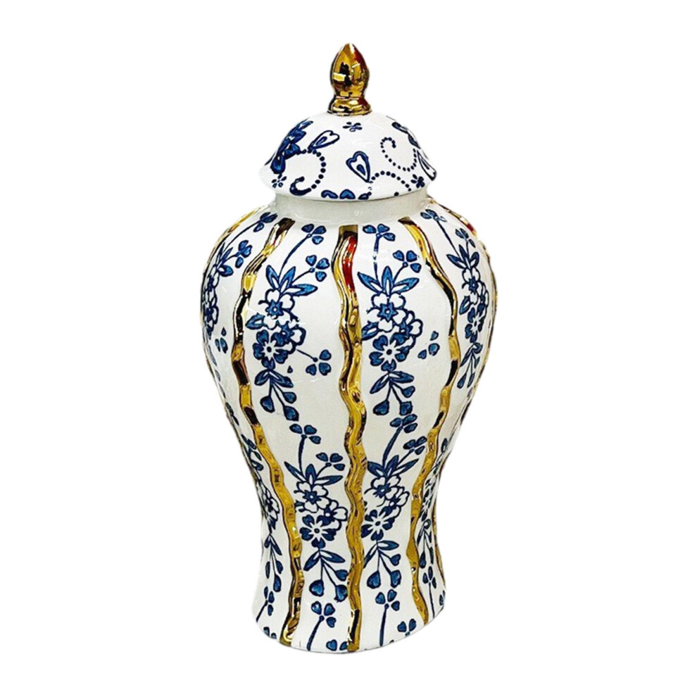 (17cmx17cmx31cm, One size) Porcelain Ginger Jar Ceramic Tea Canister Tin for Bedroom Party Housewarming 22cmx22cmx45cm