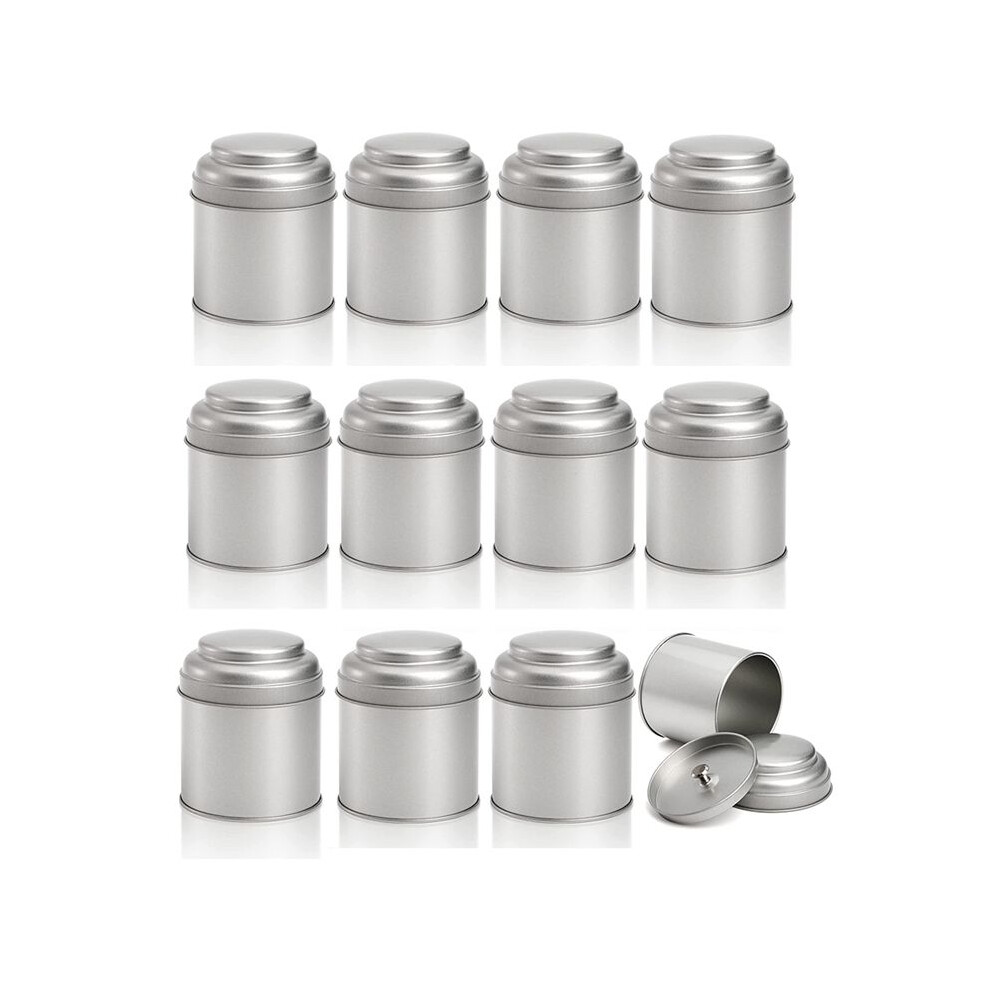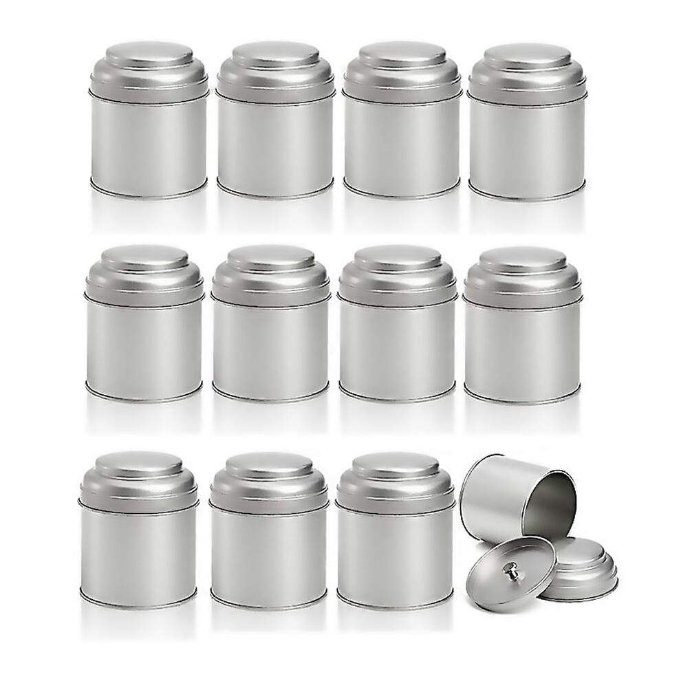 For 12 Pcs Tea Tin Canister With Airtight Double Lid 8oz Round Tin Can Box Small Kitchen Tea Caniste
