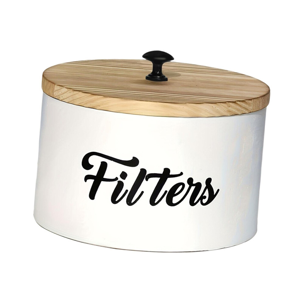 Farmhouse Coffee Filter Stand And Tea Tin Canister Storage Solution