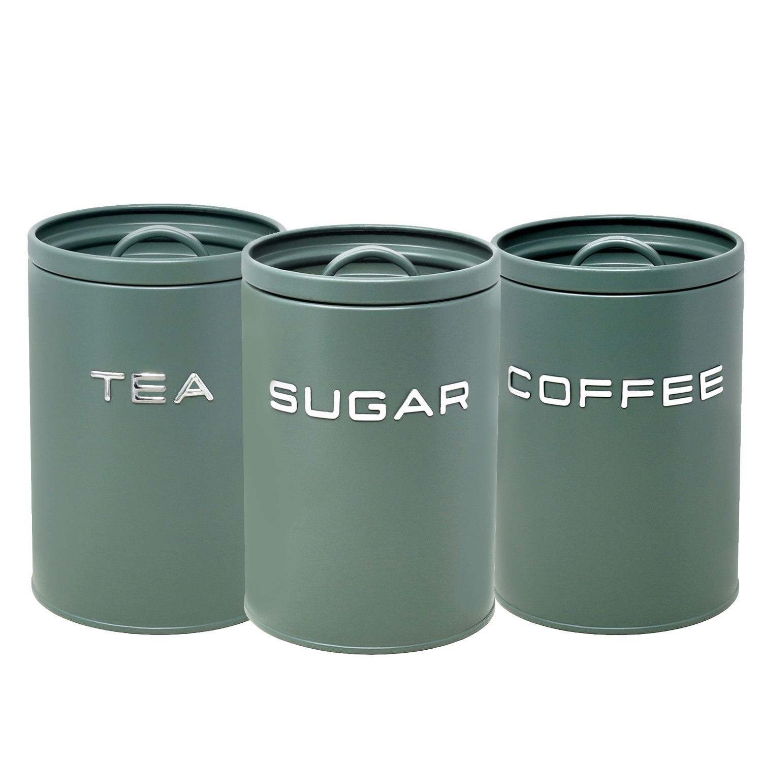 Tea Coffee Sugar Canister Set Airtight Lid Kitchen Storage Tin Sage Green 3Pcs