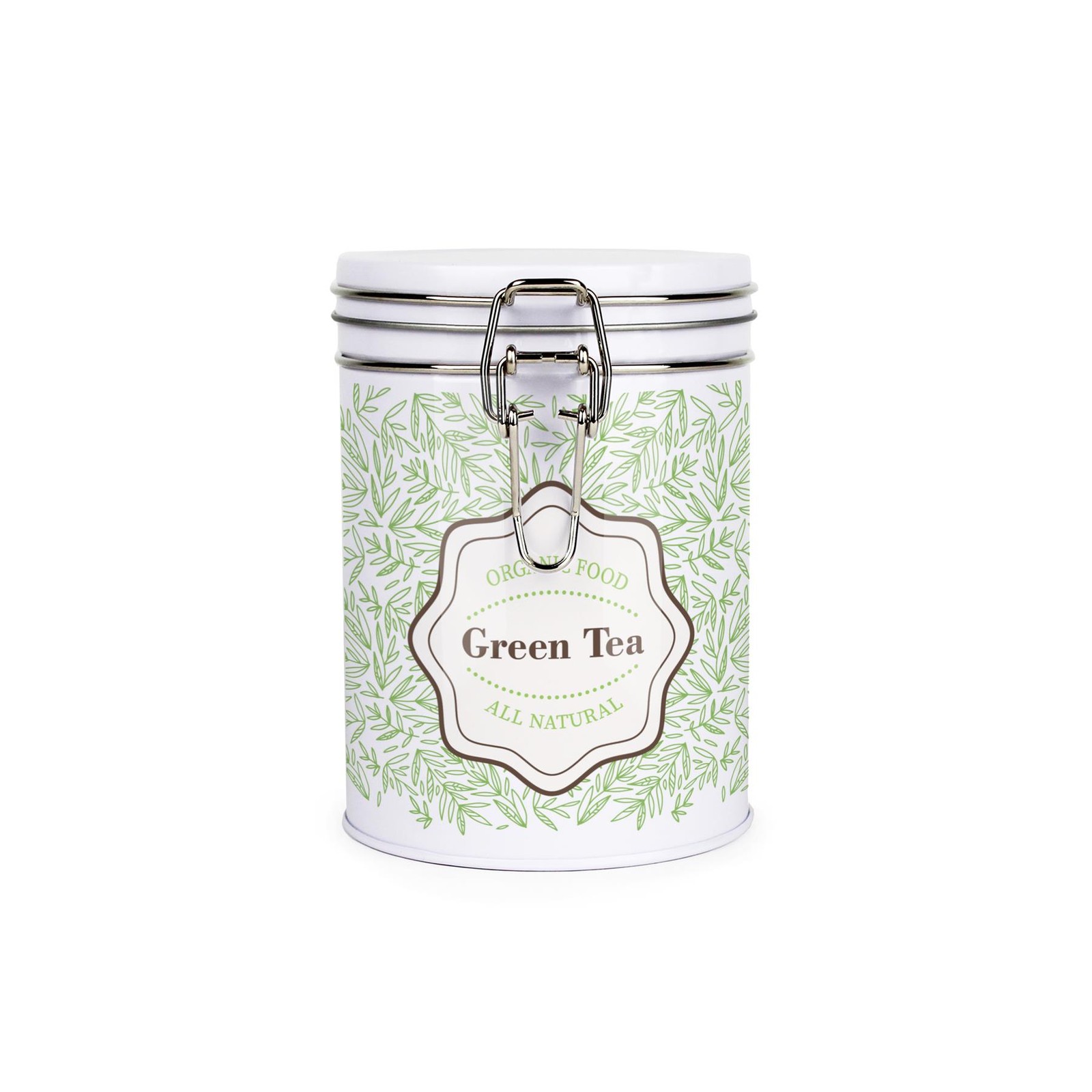 Organic Green Leaves Hot Drinks Canister - Green Tea Clip-Lid Storage Tin
