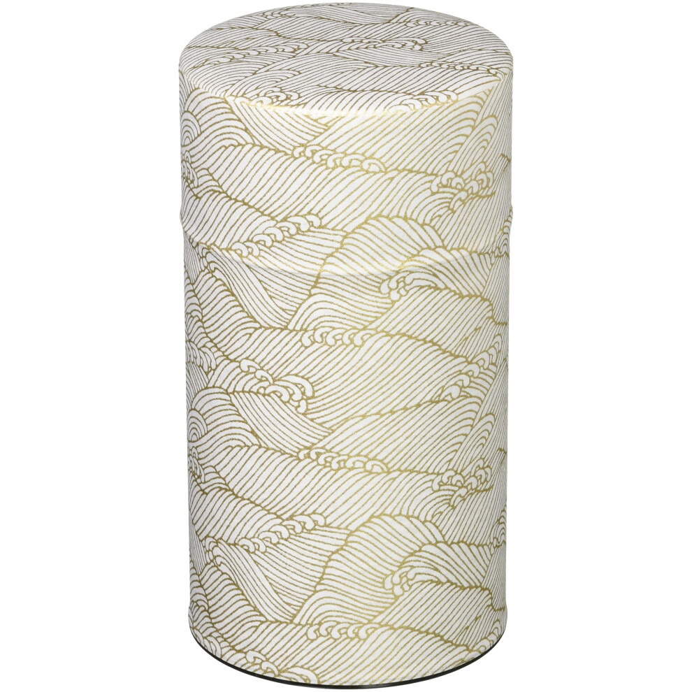 Yamako Pokkan a Japanese Tea Tin Canister Air Tight Double Lid 200g Tea Capacity (Wave - Japanese Traditional Wave Pattern L - 200g)