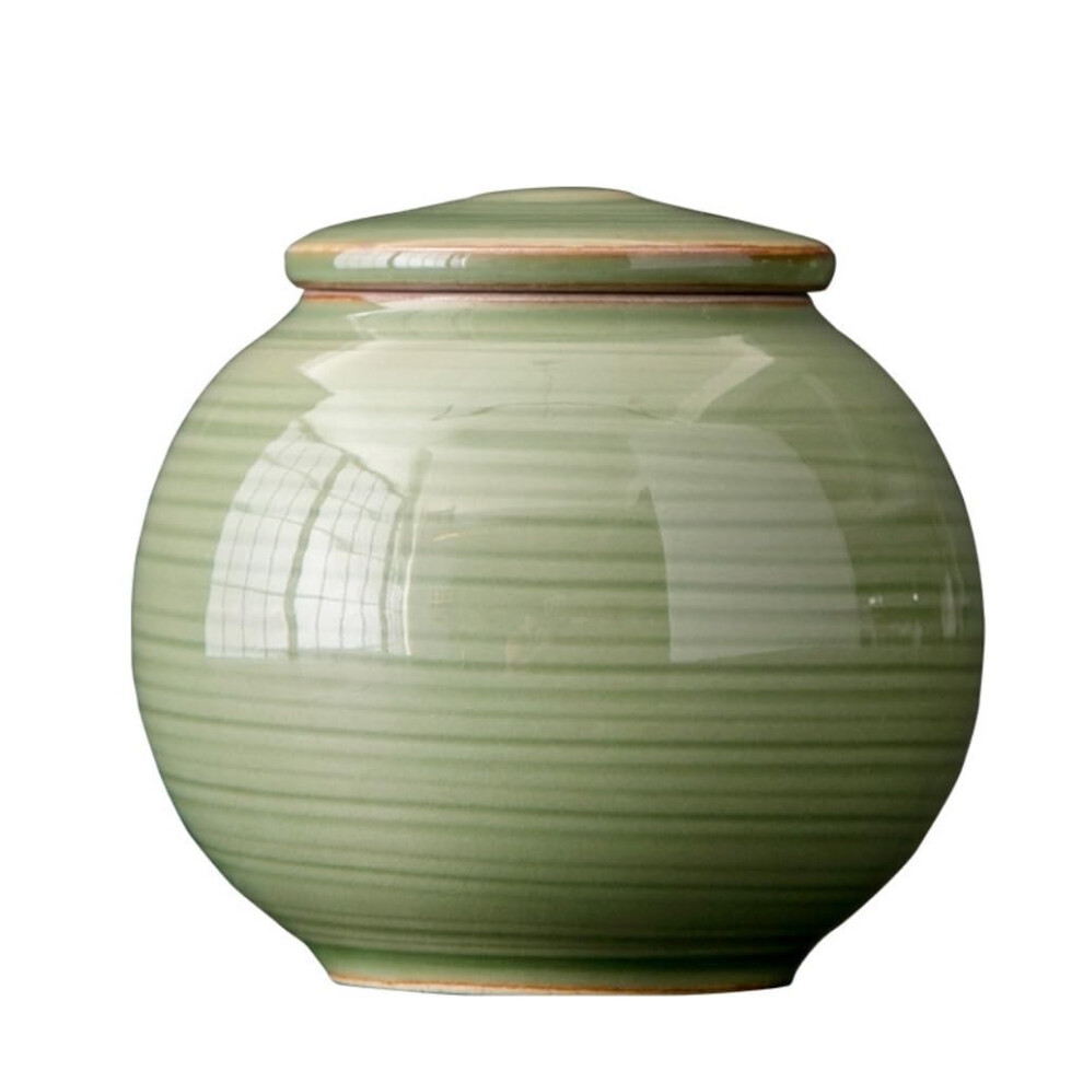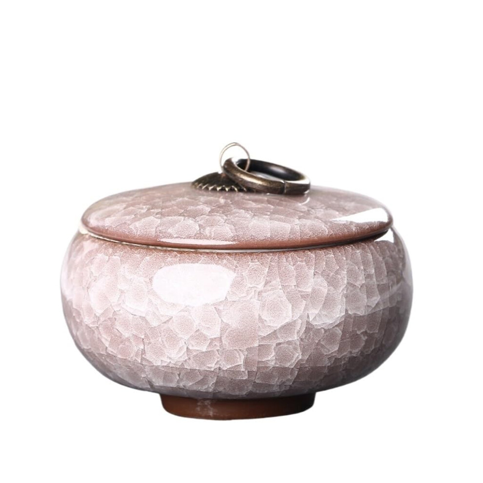 Tea Tin Canister Ceramic Ice Crack Glaze Sand Color Mini Tea Storage Can Moisture-Proof Coffee Canister (B)
