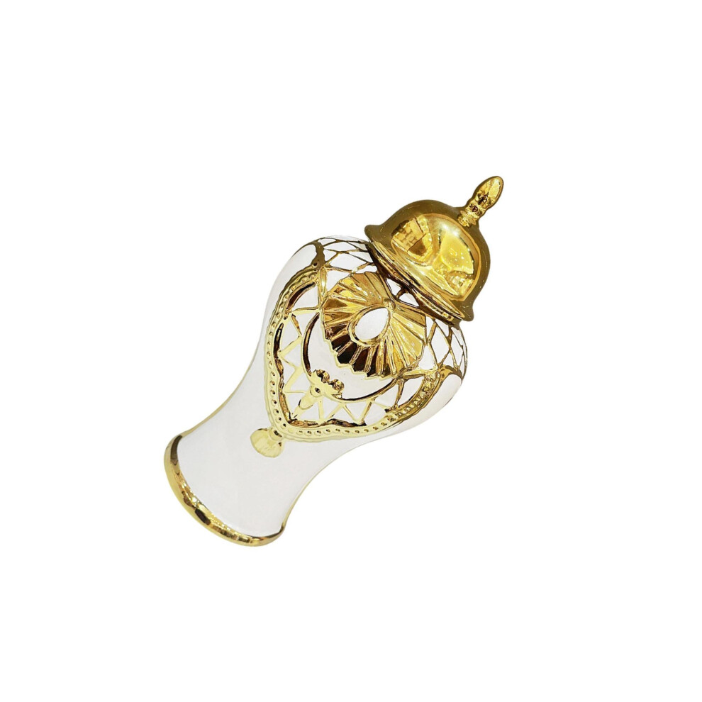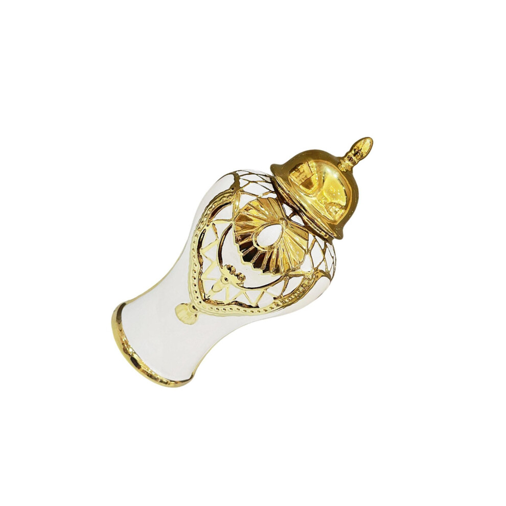 (White and Gold, 18x18x38cm) Tea Canister Tin For Lo Tea And Spice Beautiful Chinese Ceramic Ginger