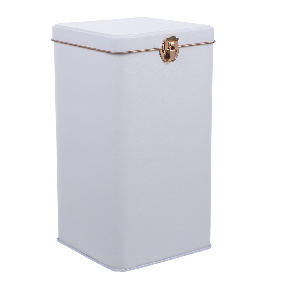 (White and Gold, 17x17x31cm) Tea Canister Tin Lo Tea Coffee Candy Spice Organizer For Weddings And