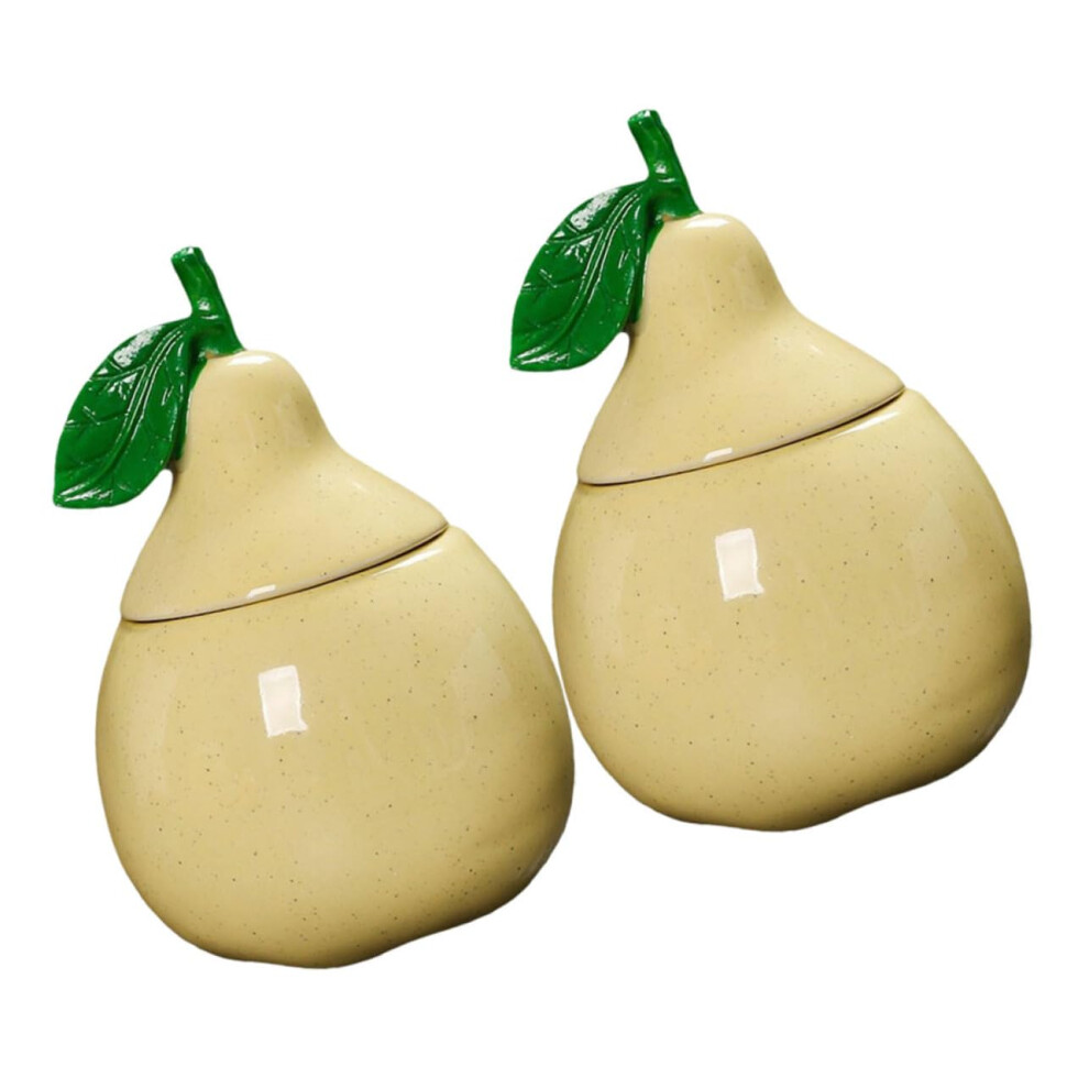 2 pieces pear tea canister, airtight container, decorative tea container, glass storage jar for sweets, vintage tea tin, retro canister, ceramic beige