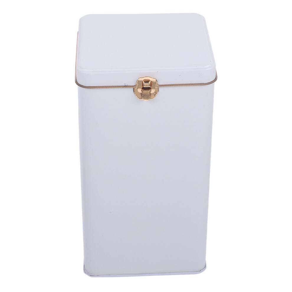 (White and Gold, 17x17x31cm) Tea Canister Tin Lo Tea Elegant Candy Spice Organizer Housewarmings