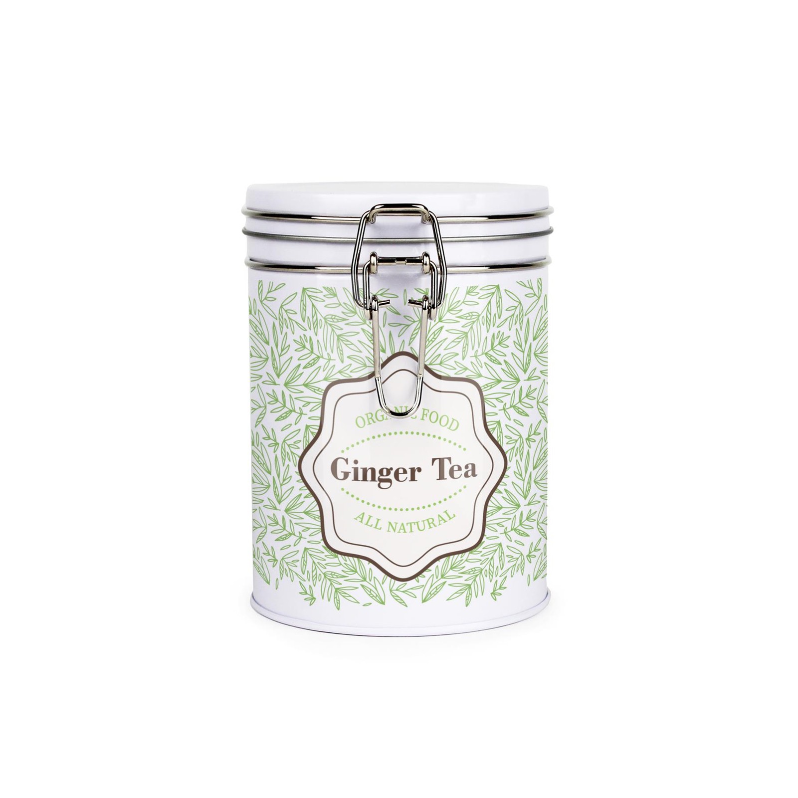 Organic Green Leaves Hot Drinks Canister - Ginger Tea Clip-Lid Storage Tin
