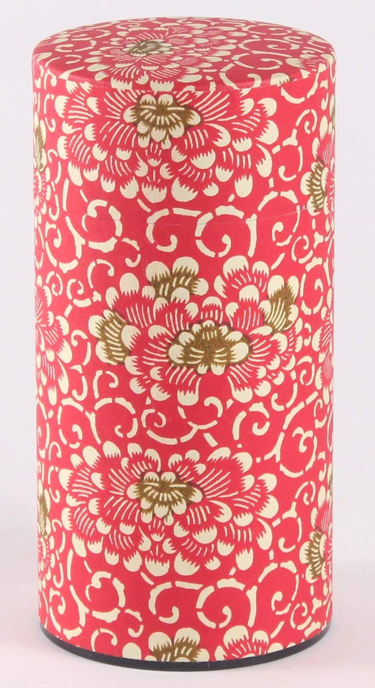 Washi Paper Tea Tin Canister: Long 7oz (200g) Pink Dianthus (#39), Japan jp