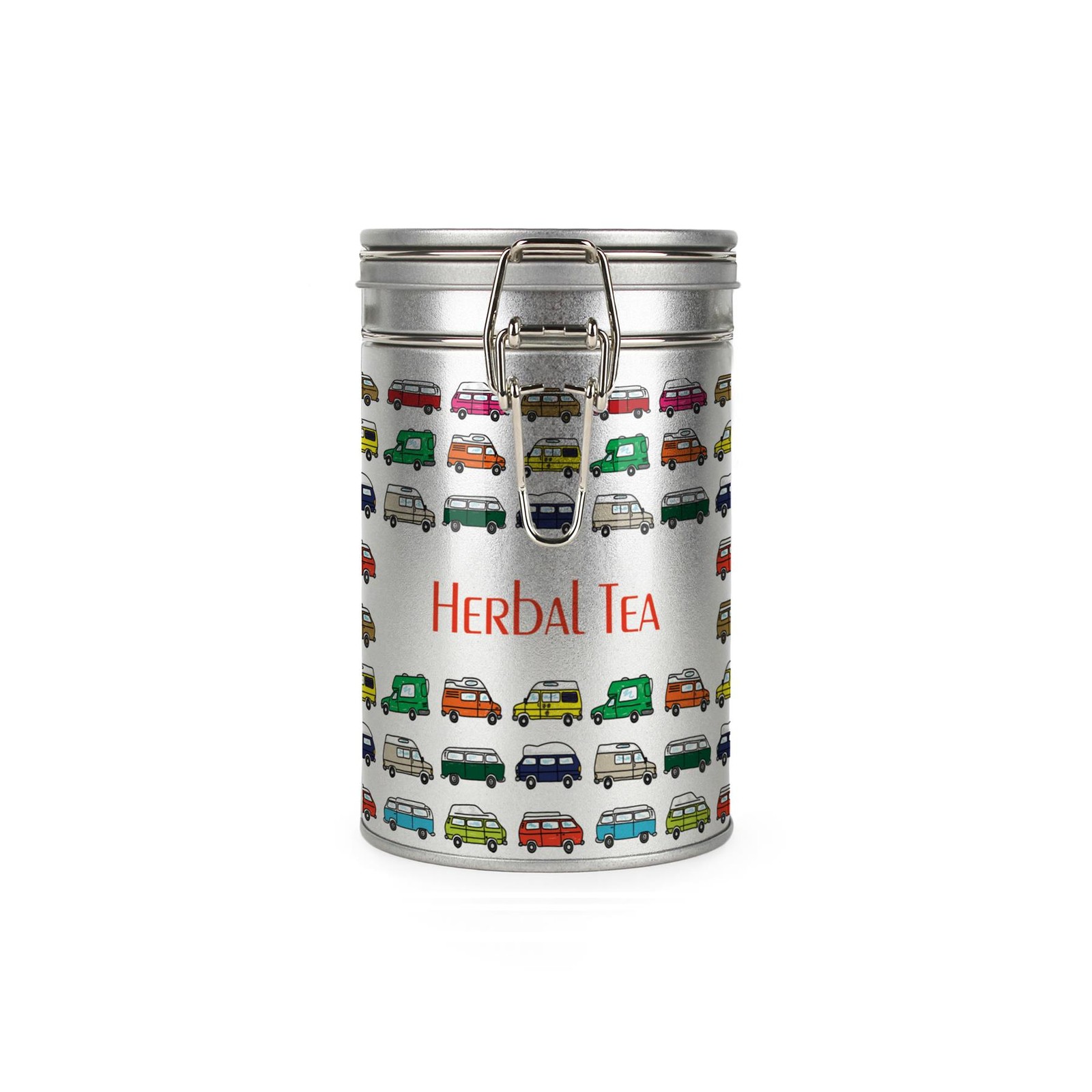 Campervans Herbal Tea Canister - Silver Kitchen Storage Gift Tin for Campers