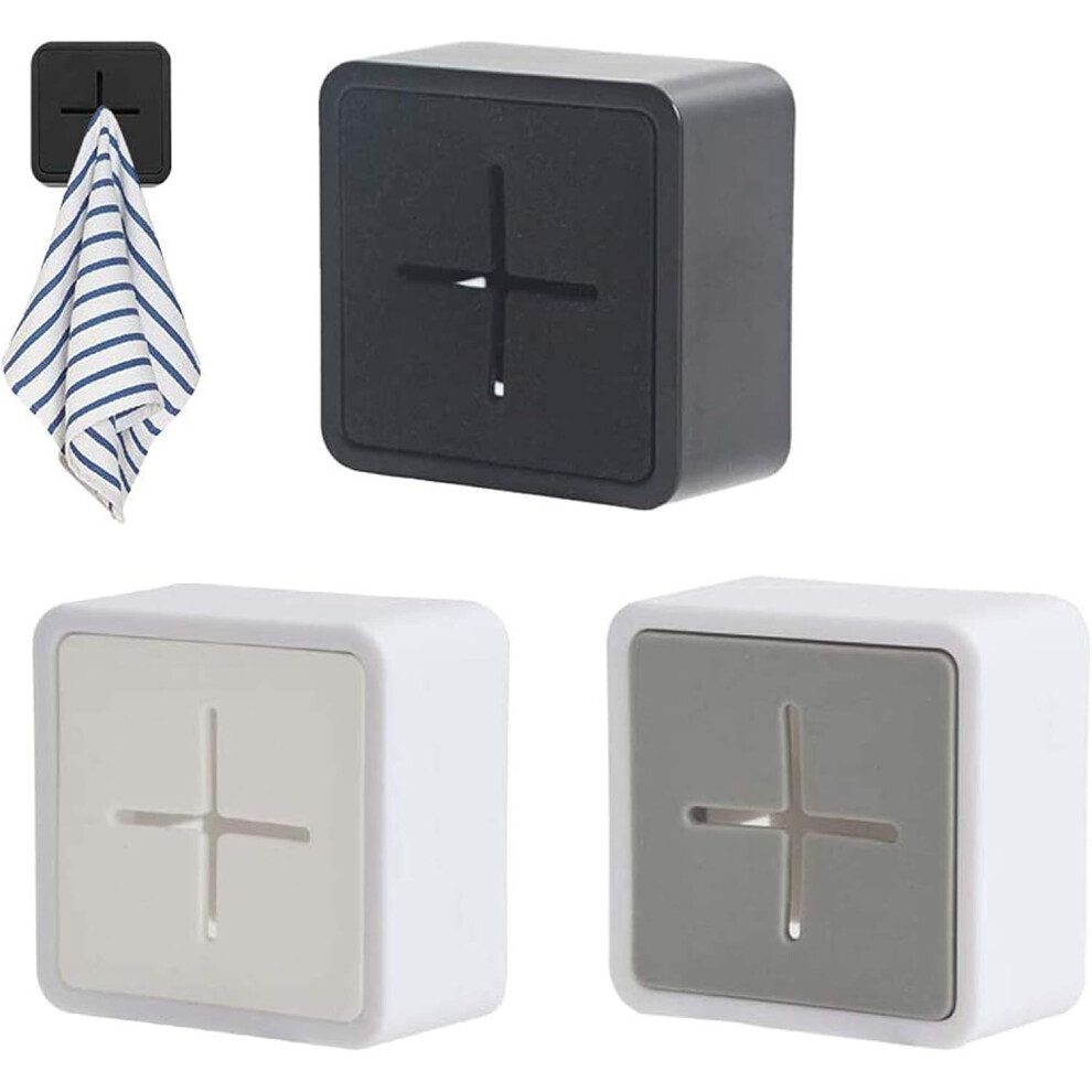 Tea Towel Rack, Premium Silicone Self Adhesive Towel Hook Anti Collision Square Wall Mount Towel Rack for Bathroom Kitchen Set of 3 (White, Gray, Blac