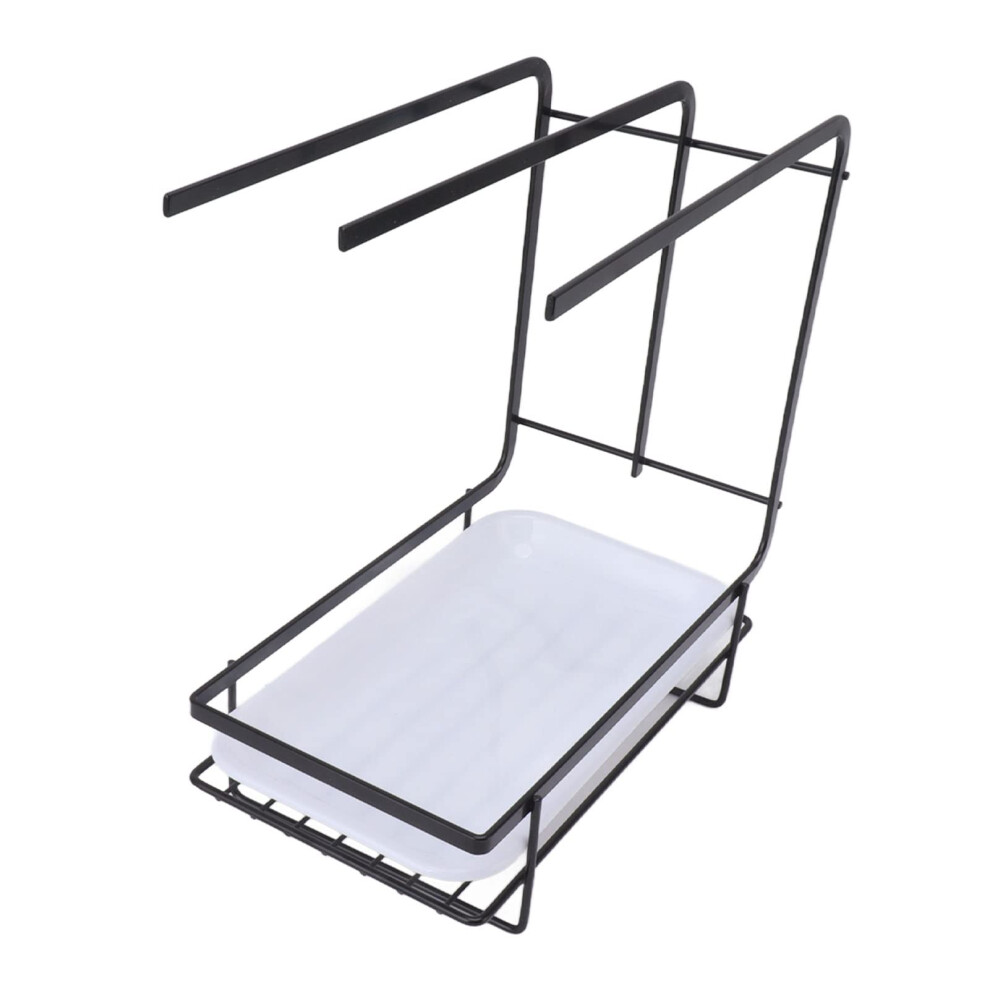 Tea Towel Rack, Tea Towel Drying Rack, Hollow Base with Drain Pan for Kitchen (Black)