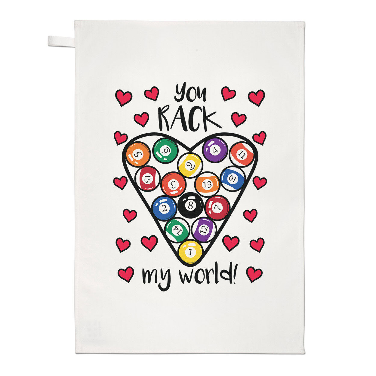 You Rack My World Tea Towel Dish Cloth - Funny Valentines Day Snooker Pool