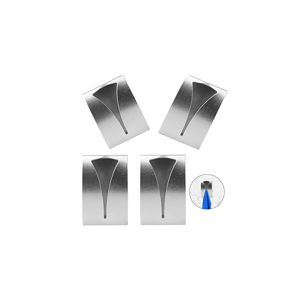 4Pcs Self Adhesive Metal Towel Holders, Stainless Steel Hand Towel Hook Tea Towel Hook Rack for Bathroom Kitchen, Wall Mount Hook Bath Towel Hook