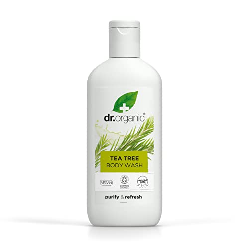 Dr Organic Tea Tree Body Wash, Shower Gel, Natural, Vegan, Cruelty-Free, Paraben & SLS-Free, Recyclable & Recycled Ocean Bound Plastic, Certified Organic, 250ml, Packaging may vary