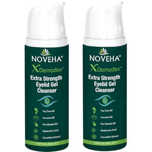 NOVEHA Demodex Extra Strength Eyelid Gel Cleanser - for Demodex, MGD and Dry Eye with Pro-Vitamin B5, Tea Tree Oil, and Hyaluronic Acid - Gentle Cleansing, Soothes Itchy Eyelid - 50mL (2 Pack)