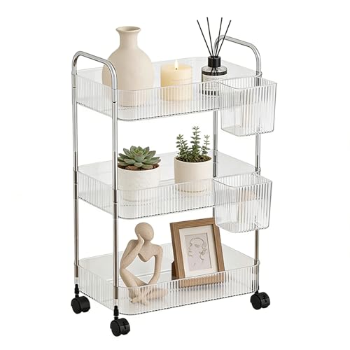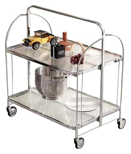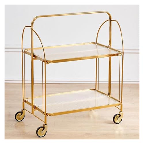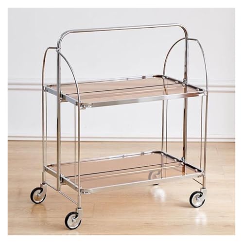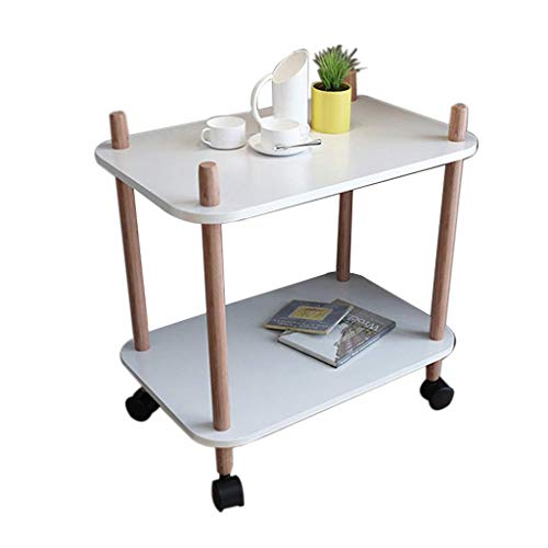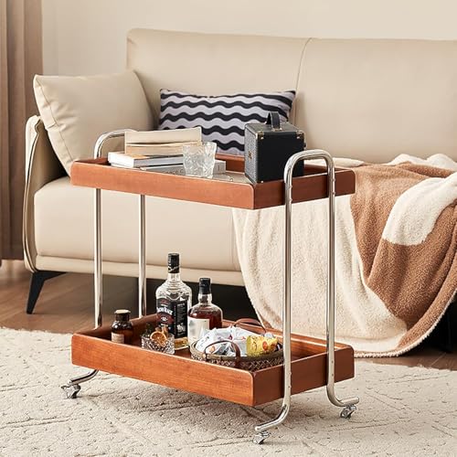 Vintage Wood Rolling Coffee Table with Storage Shelf, Mobile Tea Trolley for Living Room and Bedroom