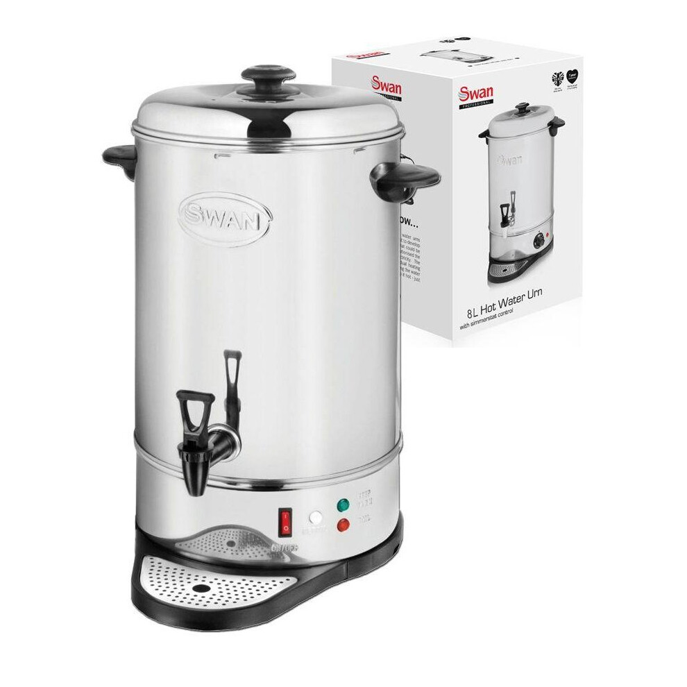 Swan Tea Urn Simmer Sat Control Non Drip Tray 8L - Silver (Model No SWU8L)