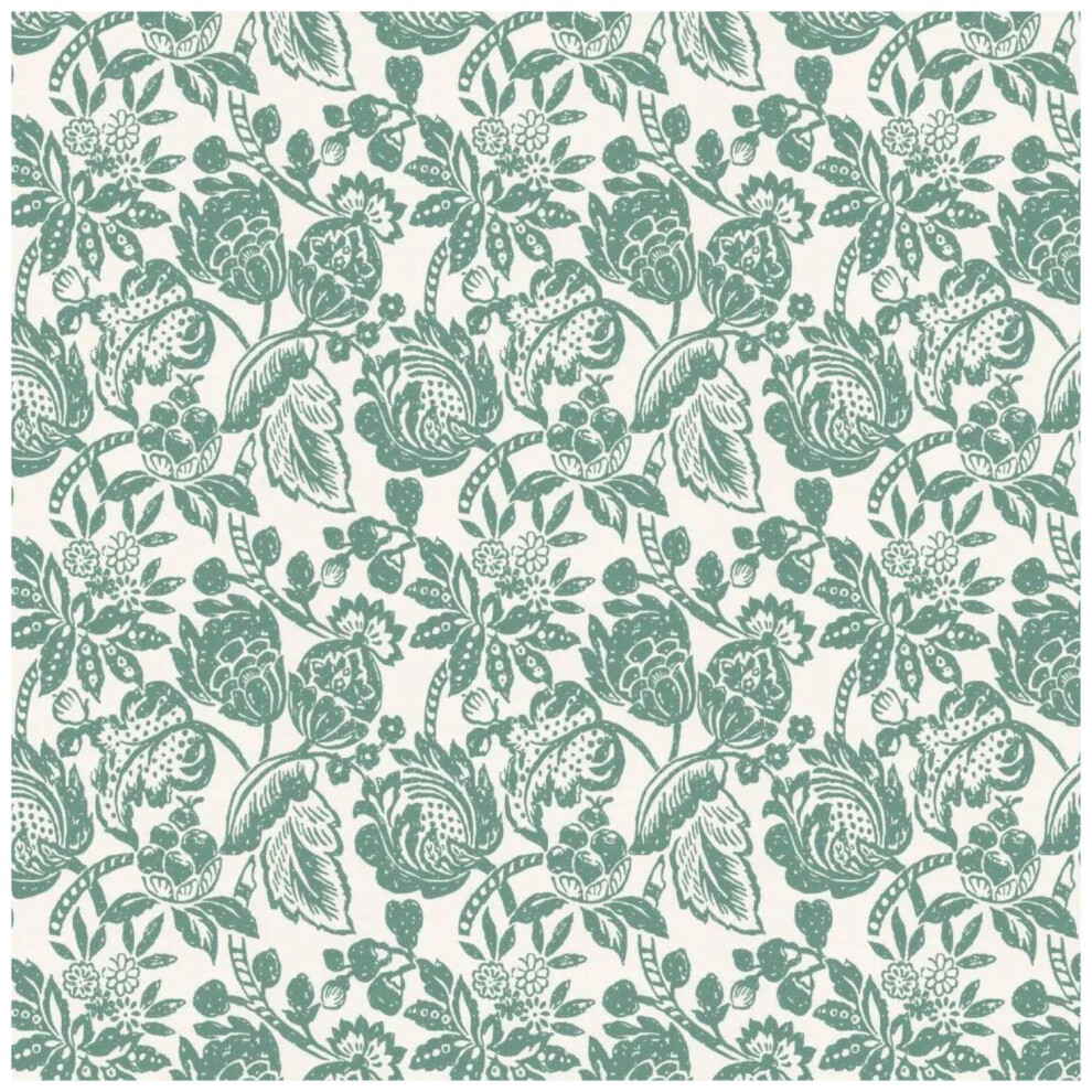 Vintage Floral Wallpaper Teal Green Off White Non-Woven Paste The Wall