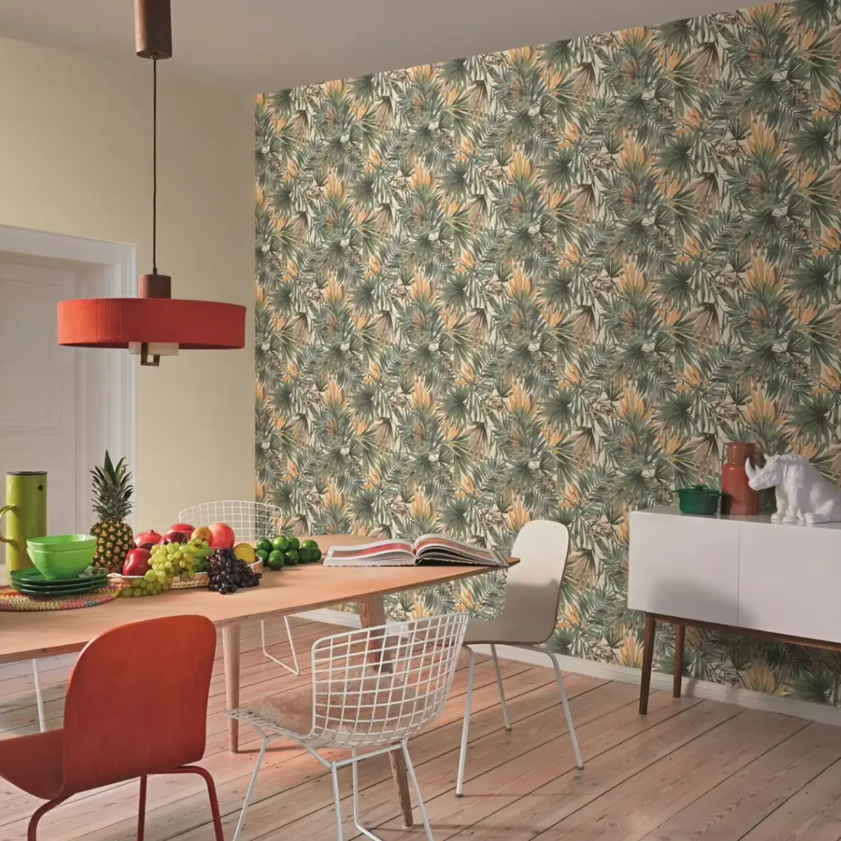 Tropical Palm Leaf Vinyl Green Wallpaper Teal Ochre Botanical Feature Wall
