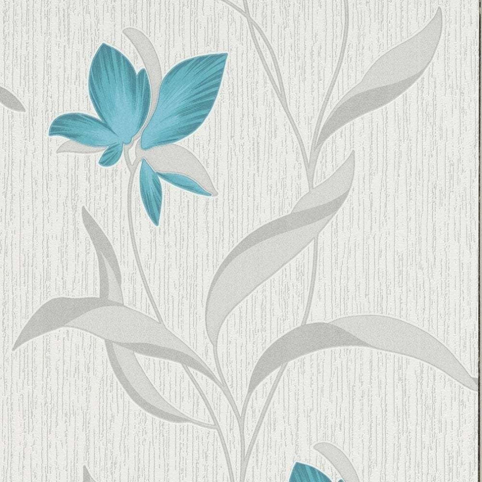 Teal Silver Flower Wallpaper Floral Textured Glitter White Vinyl Erismann